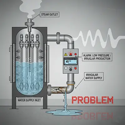 Symptoms: Irregular steam production, pressure reduction or control panel alarms.